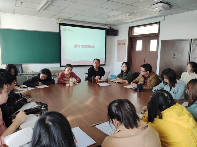 艾俊颖对2019年度支部建设情况进行简要总结。学生党员依次发言,联系实际进行了批评与自我批评,紧密结合思想、学习和工作实际,深刻剖析自身存在的问题,并提出了改进措施;坦率诚恳,直截了当地指出其他党员存在的问题和不足,真心实意提出改进意见。